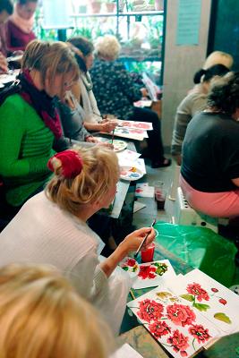 Готовились к занятию тщательно. Так как китайские художники в основном рисуют сидя, все участники хотели найти сидячее место…, но сидячих мест на всех желающих не хватило, пришлось занять и стоячие.