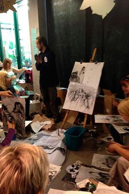 После окончания занятия я успела заглянуть в другой мастер-класс, где рисовали черно-белый пейзаж.