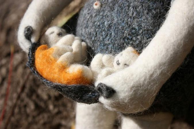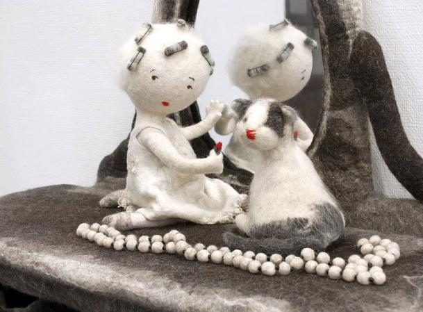 Первой из войлока "вылупилась" корова, вскоре после нее на свет появилась валяная композиция под названием "Ребро Евы". Как говорит мастерица, никогда точно не знаешь, какой будет новая история. Вдохновение для своих трогательных сюжетов художница черпает из воспоминаний детства и наблюдений за своими детьми. Также идеи часто преподносит кошка по кличке Мурка, которая всегда сопровождает Ирину во время работы над войлочными скульптурами.