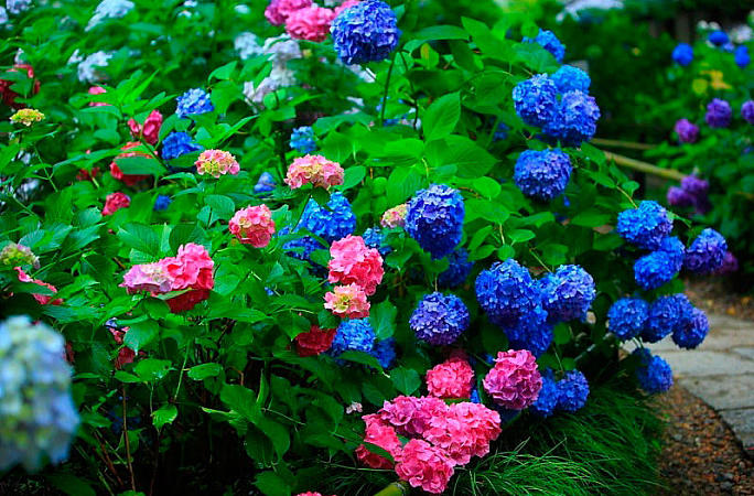 Как раскрыли, самое время внести препараты, подсинивающие цветки, если не удалось сделать это осенью. По поводу подкрашивания гортензий всегда возникает много вопросов. При манипуляциях с кислотностью почвы из розовых растений получаются голубые, из красных — фиолетовые. Оттенки бывают самые разные — от лавандовых и нежно-сиреневых до ярко-синих и даже чернильных.