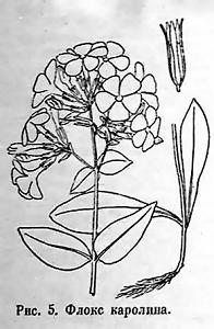 Флокс каролина (Ph. Carolina L.), каролинский, местное название — толстолистый (рис. 5). Произрастает в диком виде от Западного Мериленда и Южной Индианы до Флориды и Миссисипи.