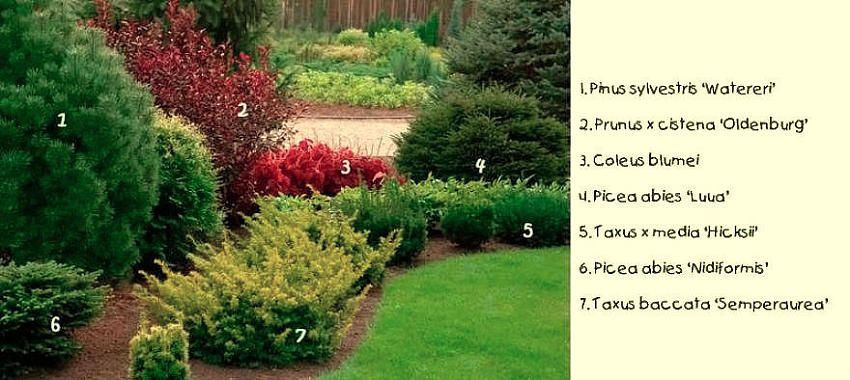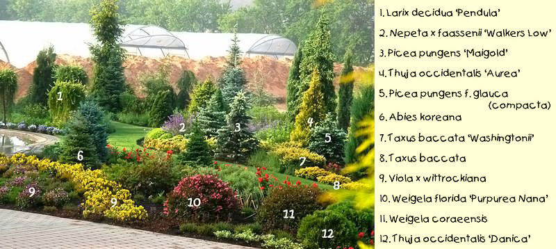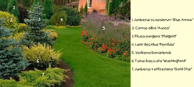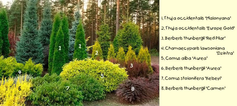 Примечания "Делёнки". Для того, чтобы композиции были стабильно декоративными, советуем не использовать кипарисовик Лавсона, то есть найти ему замену. Он зимует нестабильно.