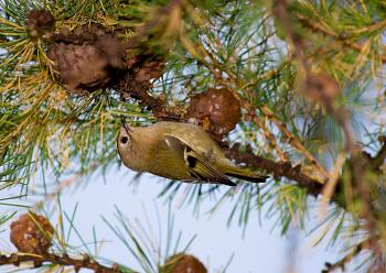 Синицы охотятся в основном в кронах — снуют там, собирают и со ствола, и веточек, и с листиков. Подлезают, снизу заглядывают, с веточек свешиваются. Собирают все, что видят в щелках коры.