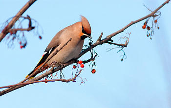 Попозже, осенью, черноплодку могут съесть свиристели. Они гнездятся на севере, а потом откочевывают к нам и держатся у нас до весны. Но они прилетают поздно, в саду в это время уже ничего нет, они рябину едят.