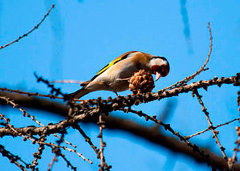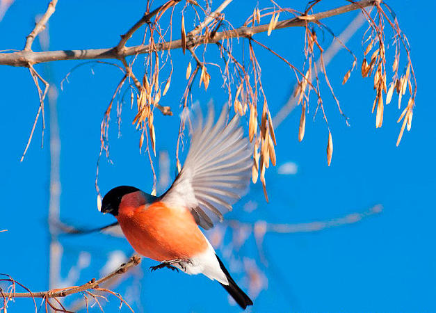 Снегири очень хорошо на кормушке едят. Чижи, чечетки, но это зимой.