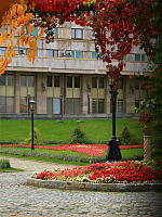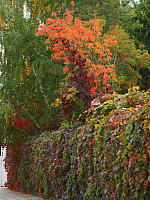 Последняя фотография получилась интересной: покрасневший девичий виноград (вроде на него похоже) продолжает фонарный столб... Получается как одна единая конструкция. Это случай или наметанный глаз фотографа? )