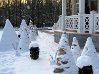 Все бы ничего, только есть два нюанса. Первый: подобная конструкция имеет право на жизнь там, где выпадает умеренное количество снега и главное, где он не валится с крыш. Иначе сооружение сомнется и перестанет выполнять свои функции. Считать сетку каркасом в нашем климате невозможно, поэтому изделие необходимо дополнить. Второй: ширина рулона от 0,4 до 1,0 м. Этой ширины явно недостаточно, чтобы укрыть взрослые кустарники и хвойные.