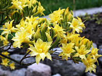 Главное их преимущество перед вечнозелеными рододендронами в условиях нашего резко континентального климата — в конце зимы они не страдают от солнечных ожогов, потому что зимуют без листьев.
