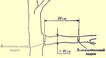 При спиливании ветвей не все начинающие садоводы догадываются сделать сначала подпиливание снизу, и в результате происходит задир коры, после которого рана трудно зарастает.