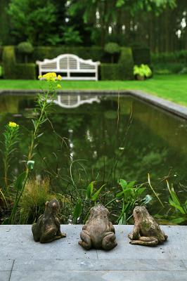 Самшит я очень люблю, в теплые дни он так приятно пахнет кошками… А еще в саду устроены протяженные висты, прекрасные миксбордеры, уютные уголки отдыха, как, например, патио во внутреннем дворе или беседка около регулярного пруда, где я вместе с каменными лягушками люблю наблюдать за рыбами.