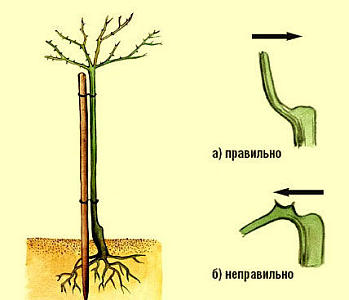 Обратите внимание, важно наклонять штамбовую розу в правильном направлении, как это показано на рисунке.
