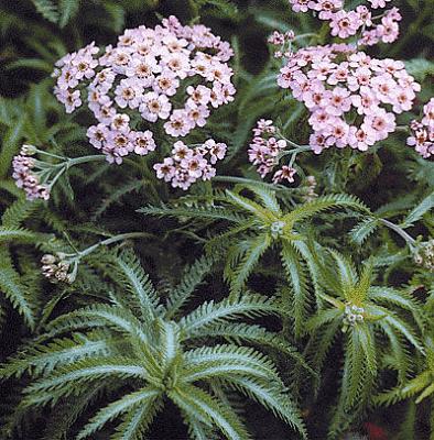 Тысячелистник сибирский (камчатский) 'Love Parade'. Цветки лавандово-розового цвета, при отцветании становятся белесыми. Листья очень красивые, рассеченные. Побеги похожи на ажурные пальмочки. Растение неприхотливое, легко разрастается. Высота 40-60 см. Растет на солнце и в ажурной тени. Цветет в июне-июле.