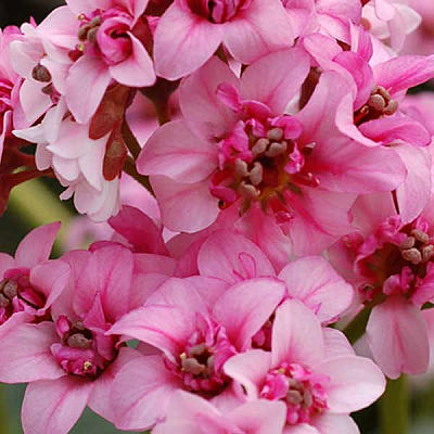 Бадан 'Dragonfly Sakura'. Цветки нового бадана, собранные в высокие соцветия, появляются практически вслед за цветением вишневых деревьев. Они словно подхватывают известное "цветение сакуры", которое так сильно напоминают всем своим обликом — такие же полумахровые и нежно-розовые.