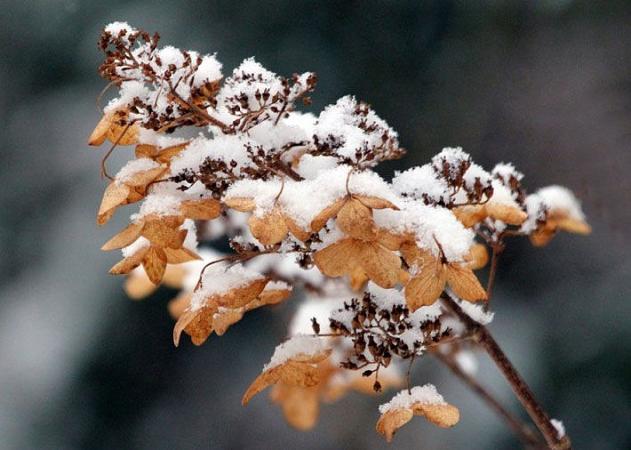 Если зимой вы не бываете в саду и не любуетесь снежными шапками, удалите соцветия древовидных и метельчатых гортензий, чтобы кусты не разломались под тяжестью снега. Эти кустарники, хорошо зимующие в условиях средней полосы России, в октябре можно без опасения подвергнуть сильной обрезке, укорачивая побеги до 4-5 почек, чтобы весной сэкономить драгоценное время.