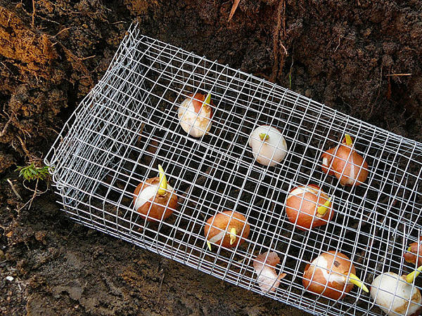 Если сажать тюльпаны в сетчатые корзины (или иные приспособобления), то надо помнить, что мышь пролезет даже в сантиметровую ячейку, так что сетка должна быть очень частая, с ячейкой 0,5 см².