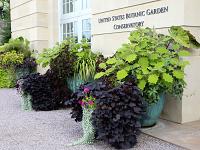 В саду работают хорошие колористы. Посмотрите, какие они делают композиции в контейнерах.