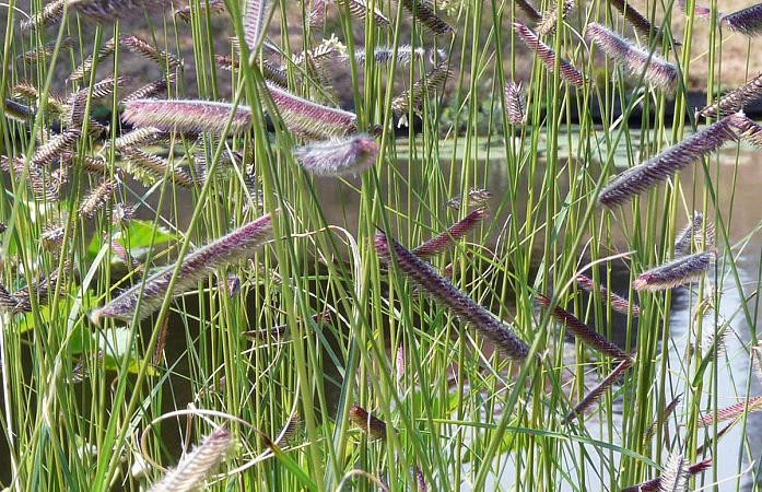 Как однолетние в саду можно выращивать и многолетние злаки, не способные переносить в открытом грунте наши зимы. Если непременно хочется увидеть цветение перистощетинника щетинистого (его семена можно купить), то придется выращивать его через рассаду. Но усилия того стоят — уж очень хороши сиреневатые пушистые колосья. Перистощетинник сизый (Pennisetum glaucum) также не останется незамеченным в саду благодаря своему импозантному виду и необычной шоколадно-коричневой окраске. Я имею в виду сорт Африкан Пепл (African Purple).