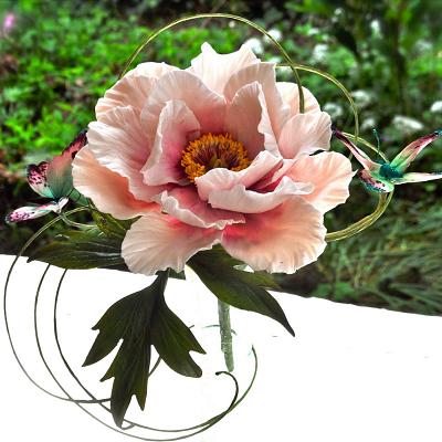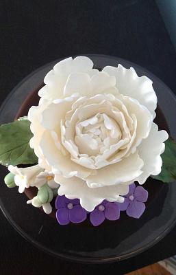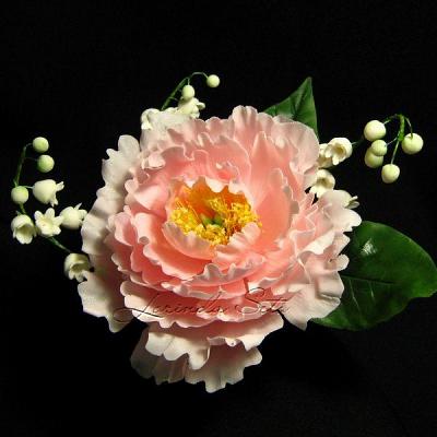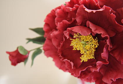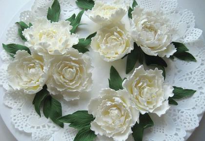 Говорить тут особенно не о чем. Просто очень красивые цветы получаются из сахарной мастики. Признаться, я о существовании такой мастики вообще до сегодняшнего дня не знала. Но при поиске определенного сорта пиона в интернете меня поразил какой-то совершенно фантастический цветок, открывшийся по запросу среди прочих. Пригляделась - а он ненастоящий! Потом уж, цветок за цветком, насобирался целый букет сахарных пионов.