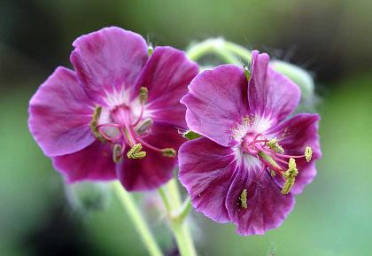 Когда разговор заходит о герани мелкотычинковой (черноглазой, армянской) (G. psilostemon), все переходят на превосходные степени. Да, она впечатляет, даже видовая. Ведь цветет три месяца! Сорта — это межвидовые гибриды, в которых, однако, всегда чувствуется армянская кровь. Яркую фуксиновую окраску, черный глазок и темно-пурпурные жилки они унаследовали все без исключения. Не перепутаешь.