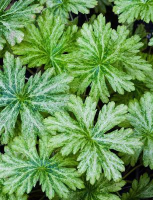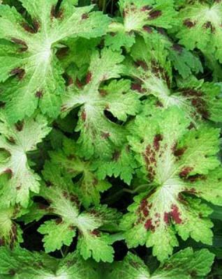 Отдельные сорта, например, 'Margareth Wilson', только за листья и держат (цветоносы просто удаляют). Листья исключительные — мозаично-вариегатные, мраморные. Издалека смотрятся как серебристые. Ради листьев еще держат сорт 'Springtime', а ради цветков — 'Lavender Pinwheel'. Они, как видно из названия, лавандового цвета. Существует белоцветковая форма герани темной. Цветки у нее крупней, чем у 'Samobor'.