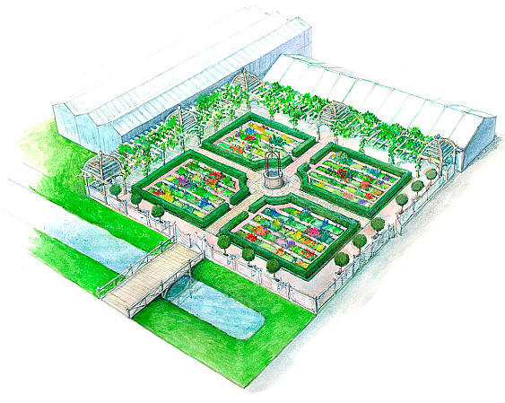 Но все же мы не стали копировать фрагмент того, что было здесь у нас. План, который мы имеем в своем распоряжении, достаточно точен: на нем можно померить в том числе ширину грядок и дорожек. Но все это было несколько другого масштаба, поскольку сад, который мы сделали, имеет размер 20 на 30 метров, а площадь сада XVIII века — фактически 5 гектаров. Поэтому задача состояла в том, чтобы его масштабировать — сделать соразмерным месту, которое мы выбрали, сохранив при этом правильные пропорции.