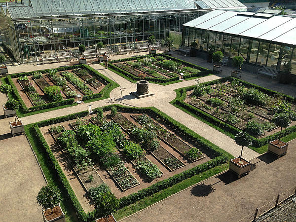 На грядках, например, растут алоэ — всем известные комнатные растения, которые летом прекрасно себя чувствуют на улице, однако осенью их надо пересаживать в оранжереи. То же относится к деревьям в кадках (цитрусовым, маслинам или лаврам): весь теплый сезон они проводят на открытом воздухе, а холода пережидают под стеклом. К счастью, у нас есть оранжереи, куда мы можем их занести на зиму.