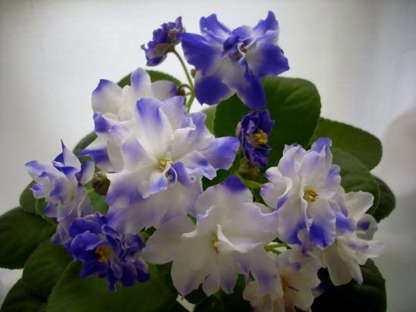 Не волнуйтесь, вашей сенполии всего хватает. Окраска может немного зависеть от температуры. Если бутоны закладываются в прохладе, в цветках будет больше белого, в жаркое лето — синего. Но вообще изменение окраски — это закономерный процесс. Двухцветные сорта сенполий особенно нестабильны. Соотношение белого к синему у них варьируется, цветки со временем затемняются, стремясь вернуться к своему природному, доминирующему синему цвету.
