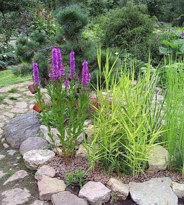 Среди болотной флоры есть и растения с яркими цветами, и растения, сплошным ковром покрывающие землю. Много среди них декоративных трав, необыкновенно нежных по структуре, всевозможных размеров и расцветок. В последние годы нам стали доступны новые западные сорта болотных растений. Многие из них я уже испытала на своем "болоте" и убедилась в их зимостойкости. Так что палитра "болота" стала ярче и выразительнее.
