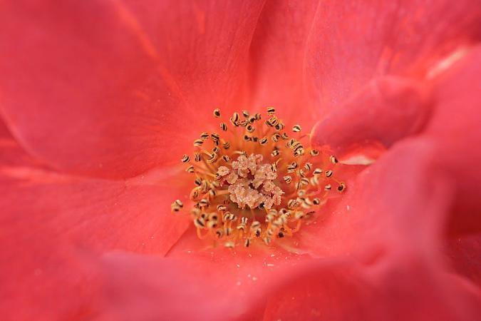 Количество тычинок в каждом цветке (по данным С. Г. Саакова) не менее 50, известны даже рекордсмены. Так, у R. bracteata количество тычинок может достигать 300-400 штук. У дикорастущих видов они нормально развиваются, а у садовых роз (особенно у густомахровых сортов) часто деформированы, иногда переходят в лепестки. Присмотритесь к цветку видовой розы R. moyesii, обратите внимание, как украшает цветок аккуратнейший венок из тычинок. Уберите это украшение, и цветок сразу станет невзрачным. Другая видовая роза R. carolina — сама «леди Совершенство», от центра цветка невозможно оторвать глаз!