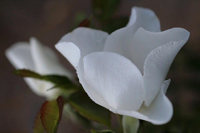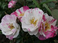 На плоском цветке особенно заметны удивительные акварельные переходы цвета, на махровых цветках обычно отвлекает форма. Например, белые полумахровые цветки ‘Sorbet Fromboise’ (Delbard, 1994) мягко и «с фантазией» украшены штрихами, полосками и пятнами розового. Со временем и в своем ритме розовый цвет бледнеет, оставляя на лепестках едва уловимый след. Удовольствие наблюдать за цветовыми переходами на каждом цветке.