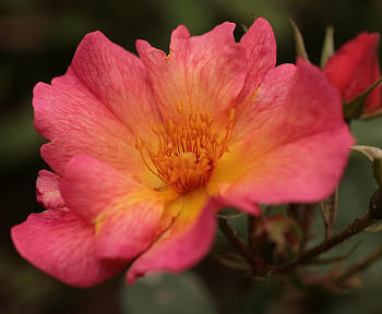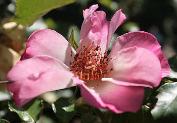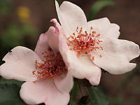 Тычиночные нити в разных сортах имеют разную длину, но окраска у них в зрелой стадии чаще желтая (от бледной до густой золотистой), поэтому исключения из этого правила могут привлекать внимание. Например, пятилепестковая красавица ‘Astronomia’ (Meilland, 2006), имеет красные тычиночные нити. Возможно, что какие-то из семи наград, полученных на международных конкурсах, связаны как раз с этим отличием. У сорта много достоинств (прекрасная листва, сбалансированная форма куста, отменное здоровье), но именно тычинки, так непривычно окрашенные, придают ей новизну и особое очарование. Красной медью отливают тычинки ‘Sweet Haze’ (Rosen Tantau, 2004) на фоне холодных оттенков серебристо-розового. Очень впечатляет!