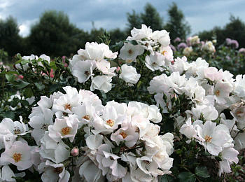 ‘Venice’ (Noack,2001), S, ADR – 2002, h=0,8-1,0 Одна из лучших белоснежных роз. Цветки среднего размера (до 6 см), очаровательные в своей простоте и естественности. Начало цветения чуть запаздывает в сравнении с другими сортами, но потом почти не имеет пауз.