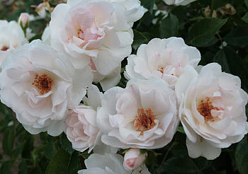 ‘Juanita’ (W.Kordes’ Söhne, 2007), ADR – 2006, S почв, h=0,8 Почвопокровная роза современного облика, с шармом видовых роз. На густых кустах так много цветков, что они почти скрывают листву. Хотя, листья в этом и не нуждаются, они декоративны и абсолютно не восприимчивы к грибным заболеваниям.