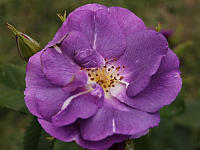 Когда смотришь на розу ‘Rhapsody in Blue’ (Gowlishaw/Warner, 2002) память лихорадочно ищет аналогии по цвету, а глаз прикован к центру цветка, к сочетанию желтого и синего. Человек, непредвзятый, обязательно оценит на интуитивном уровне это достоинство цветка. Уберите желтый центр, и остается тусклый, печальный и даже мрачный цветок.