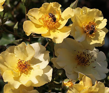 ‘Pimprenelle’ (Delbard, 1997), S, h=0,8+ Первое, что удивляет в розе — желтый, простой и крупный цветок. Большинство начинающих, да нередко и любители со стажем, любую розу с простыми цветками считают шиповником. Но желтый и крупный цветок на шиповнике! Не шиповник, а специально выведенный культурный сорт «по образцам природы».