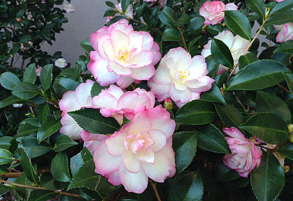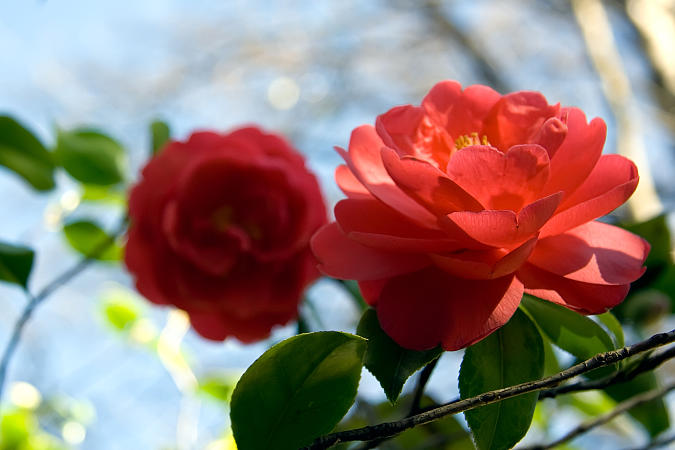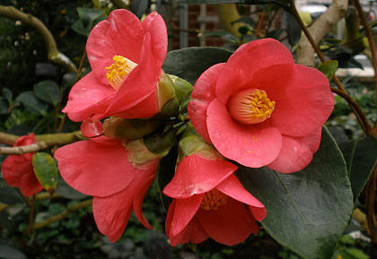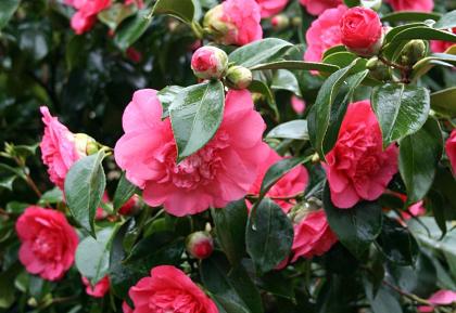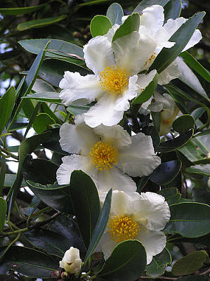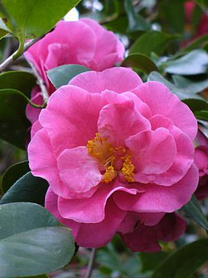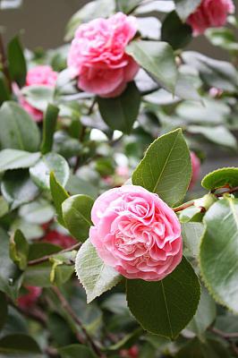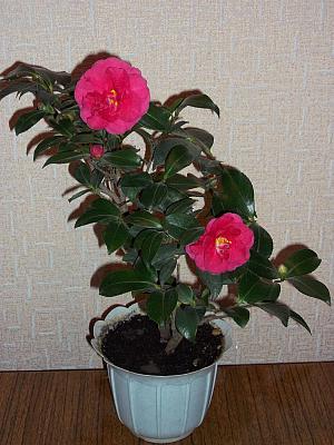 Первую я определила как Камелию японскую (Camellia japonica). Их сейчас в обилии продают в цветочных магазинах. Со второй мне несказанно повезло, это оказалась Камелия горная сасанква (Camellia sasanqua) или Камелия эвгенольная. Она используется как пряность и для получения эвгенола.