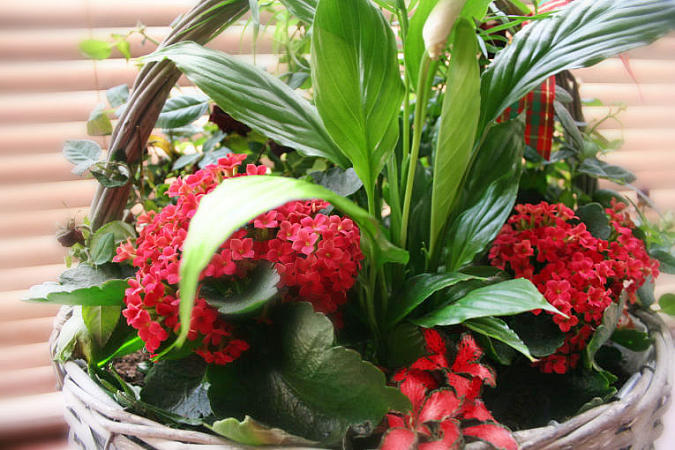 Такие композиции для праздника разбираются через несколько дней, самое позднее, через пару недель, поэтому можно не переживать, что растениям в глубине комнаты не хватит света или будет некомфортно с соседями. Можно смело использовать самые немыслимые сочетания видов, лишь бы они составляли красивую картину.