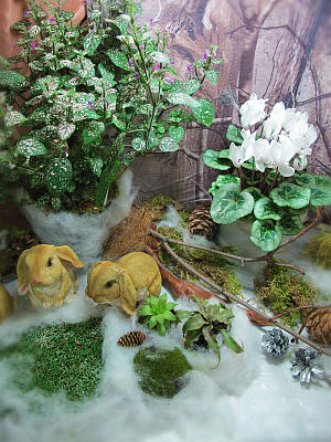 В детской комнате можно сделать что-нибудь необычное. Задник из картона с наклеенной на него картинкой будет фоном для сказочного зимнего леса с птицами и зверюшками, прячущимися среди "припорошенных снегом" растений или дворцового парка с фонтанами, аллеями, Золушкой и принцем.