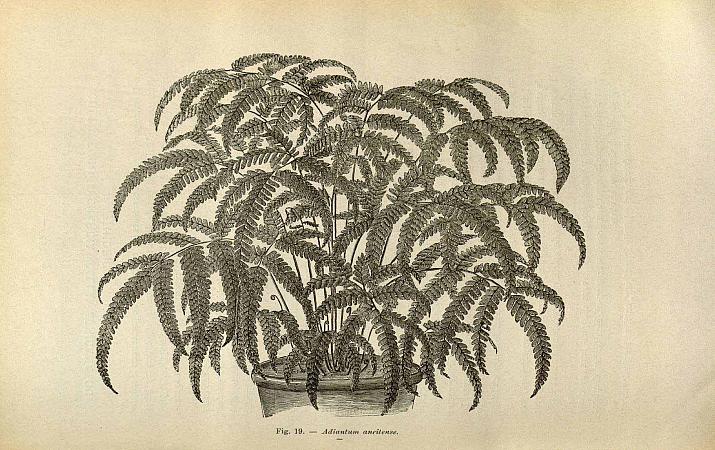 Для культуры в комнатах адиантум предпочитают всем остальным папоротникам. Нежные, обыкновенно многораздельные листья выходят из ползучего корневища и образуют густые дернистые зеленые кусты, которые превосходно служат для декоративных целей. Кучки спорангий сидят по краям близ верхушки с нижней стороны листочков; они прикрыты завернутым краем листьев.