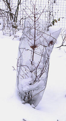 И еще бонус: укрывать, в отличие от лапника, можно... круглый год! То есть больше не надо завязывать обледеневшие веревочки синими замерзшими руками. А со стволов сетку можно не снимать вовсе, время от времени лишь ослабляя, чтобы острые края не врезались в кору.
