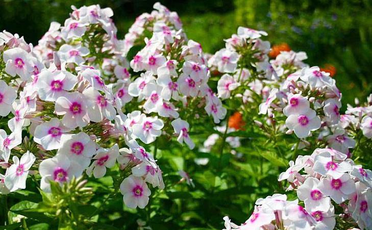 Флоксы можно пересаживать и в течение лета, но обязательно с комом земли. Кусты при этом делят на крупные части или совсем не делят, чтобы уменьшить вред от пересадки. За кустами, пересаженными летом, необходим особо тщательный уход. Сажать флоксы на рабатки рекомендуется рядами, рядовая посадка удобнее для рыхления почвы, полки сорняков и прочих работ по уходу.