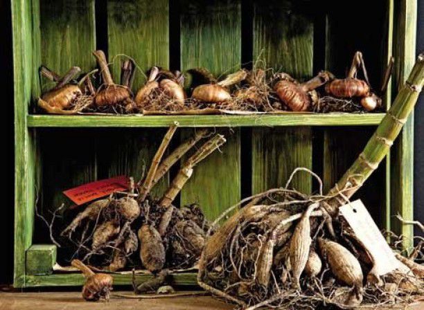 Я их храню между окон, закутываю. когда теплеет , вынимаю на подоконник,укладываю в песок в низ холодильника. Подруга закопала 200литровую бочку в землю и укрывает ее пенопластом. Клубни закутывает. И, вообще , я укдадываю все клубневые тоже в бочку, металлическую, укрываютепло, вывожу трубку наружу , загибаю ее и надеваю сетку от влезания всех любопытных, засыпаю на крышку земли. весной открываю и в дом в тазу с песком моя драгоценностьпотихонечку растет и дает мне зеленые череночки.