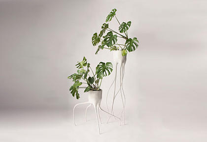 Тропическая монстера представляет собой лиану с мощнейшими воздушными корнями. Именно это экзотическое растение вдохновило голландского дизайнера на создание серии забавных цветочных горшков на тонких изящных ножках.