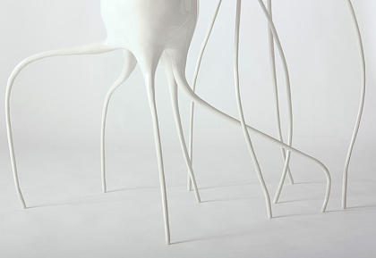 Можно представить, что глянцевые керамические вазоны белоснежного цвета сами пустили длинные извилистые корни, напоминающие причудливые паучьи ножки, которые вот-вот побегут.