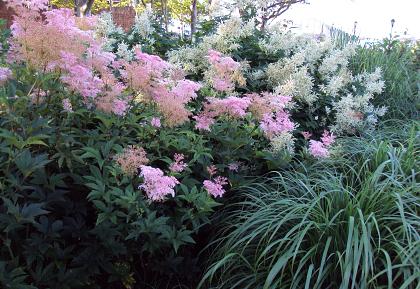 Лабазники цветут одновременно с арункусом, лилейниками, ранними флоксами и хостами.