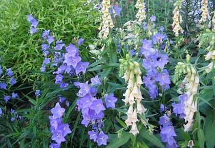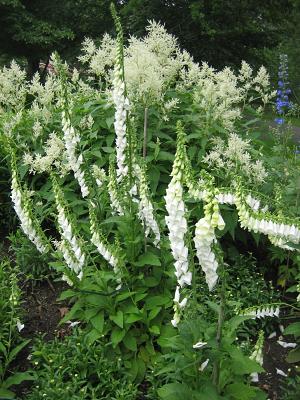 Белые наперстянки хороши с партнерами пастельных тонов. Рядом с красными, ярко-желтыми, густо-фиолетовыми цветами они просто потеряются.