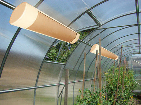 Отопление теплицы из поликарбоната часто осуществляется и с помощью инфракрасных обогревателей. Элементом обогрева может стать обыкновенная электролампочка, вкрученная в керамический цоколь. Среди их преимуществ — повышение всхожести семян на треть, возможность создания в пределах одной теплички разных температурных зон и отопительное действие непосредственно на почву или рассаду. Кроме того, они обладают длительным сроком службы (минимум 10 лет), экономят около 40-60% на энергоносителях, просты в монтировке и транспортировке.