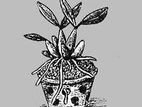 - Сухость воздуха (помещают опрокинутые плоские горшки или поддоны с отверстием в дне в большие поддоны (диаметром больше края опрокинутого горшка), а на них ставят горшки с растениями. Большие поддоны наполняют наполовину водою, которую часто меняют. Горшки часто обмывают, чтобы не развивалась плесень. В то время, когда растения пускают молодые побеги, их часто опрыскивают из пульверизатора и слабо затеняют в солнечные дни кисеею.)
