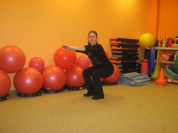 1. Приседания. Встаньте ровно, лопатки сведите, макушкой потянитесь вверх. Руки поднимите перед собой: так будет легче удерживать равновесие. Ноги поставьте на ширине бедер, стопы — параллельно. Смотрите прямо перед собой. Вес тела сместите на пятки. Корпус немного наклоните вперед. На вдохе опуститесь вниз, отводя ягодицы назад, до тех пор, пока бедра не будут параллельны полу. Стоп! Следите, чтобы колени были направлены в ту же сторону, что и носки и не вылезали вперед за носки. На выдохе вернитесь в исходное положение.