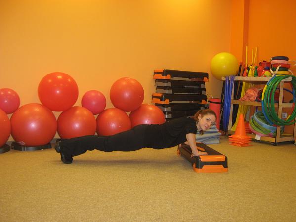 3. Отжимания. Обопритесь руками на невысокую лавочку или стену. Руки широко расставлены, плечи параллельны корпусу, не прогибайтесь в пояснице. Медленно на вдохе выполняйте отжимания, каждый раз полностью касаясь опоры и разводя локти в стороны, а затем также медленно на выдохе, возвращаясь в исходное положение.